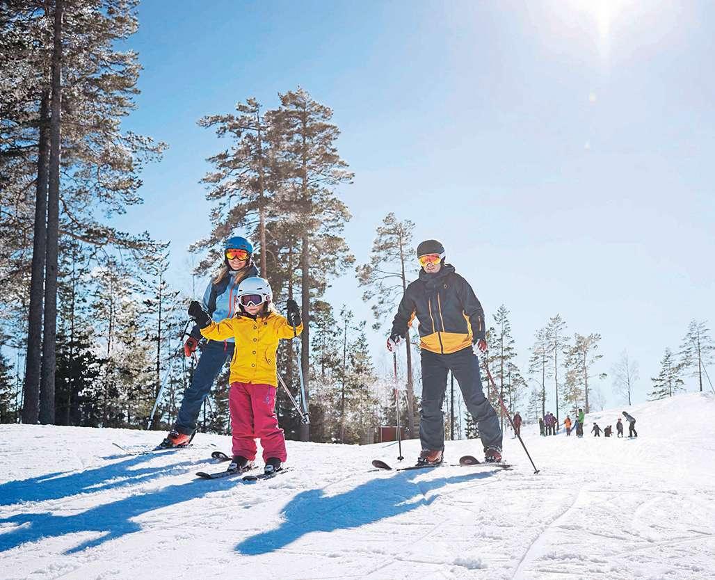 KUNGSBERGET HAR VERKLIGEN vuxit massor de senaste åren. Idag finns 23 backar och 14 liftar på området. Här ligger fokus främst på barn och familj med säkra och trygga skidområden byggda utifrån barnens perspektiv, men även lite mer utmanande backar för den mer vana skidåkaren. Mikael Elford arbetar som marknads- och försäljningschef på Branäsgruppen som är ägare av Kungsberget. Han har mycket god egen erfarenhet av semester i Kungsberget och han får väldigt mycket positiv feedback från områdets besökare: - Många av våra gäster är förstås från Gästrikland, över dagen, och så kommer många hit från Stockholm och Uppsala. Det är ju lite så, att det man tappar i fallhöjd vinner man i restid, men jag får så ofta höra en förvåning och kommentarer som ”Det här är ju en riktig skidanläggning!”, berättar han och skrattar. På anläggningen finns backar från grönt till svart och något som uppskattas av många är hur enkelt det är att vara här, och närheten till allt. - Alla våra boenden har ski in/ski out- läge, och på gångavstånd når man områdets alla restauranger och butiker. Vill man inte gå ut och äta kan vi köra hem maten. Eller mjölken till kaffet man missade att köpa i livsmedelsbutiken, berättar Mikael. Totalt finns 3000 bäddar på området i stugor, lägenheter och ski-lodges, i alla finns möjlighet till självhushåll.
