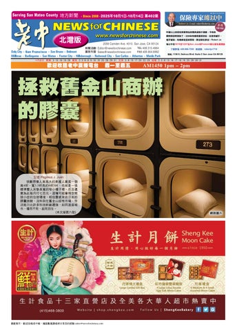 260 Main St. Suite200, Redwood City, CA 94063 新聞活動 Editor@newsforchinese.com TEL 650.369.4680 廣告刊登 Sales@newsforchinese.com FAX 650.369.4546