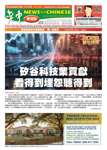2059 Camden Ave. #310, San Jose, CA 95124 新聞活動 Editor@newsforchinese.com TEL 650.369.4680 廣告刊登 Sales@newsforchinese.com FAX 650.369.4546