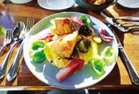 2022年10月1日-10月14日 優惠期限4-30-2020 在北加州灣區的北邊有一座國家海岸公 園,這裡除了有許多壯觀的步道,附近也有 很多生蠔農場、景觀公園以及壯麗的海濱美 景。如果來到 Point Reyes 以及 Bodega Bay 附 近,想挑選一家性價比很高的舒適度假飯店, 非常推薦這家 The Lodge at Bodega Bay。飯 店有緊鄰潟湖畔的泳池與無邊際熱水按摩池, 房間內有海景以及露臺,小酌一杯賞景非常愜 意。飯店有一家主打新穎美式與海鮮料理的餐 廳 Drakes Sonoma Coast,每天開放早餐以及 晚餐。餐廳外面的 Fireside Lounge 有舒適的 室內火爐空間,也有戶外火爐畔的座位區,以 Bodega Bay 冷冷涼涼的天氣非常適合坐在火畔 小酌,就算不是飯店住客也很推薦來這裡用餐 賞夕陽美景。 訂了餐廳一開門的五點半的座位,報到之 後服務生安排坐在了窗邊的雙人位置,窗外就 是 Doran Regional Park 與賞鳥步道,可以欣賞 潟湖與海灣的開闊美景,傍晚還可以看到夕陽 的光輝。 Concord Crush $16 我點了左邊這杯以柑 橘琴酒以及接骨木酒為底 的調酒,加入葡萄汁、萊 姆、糖漿以及迷迭香,裡 面還有一顆葡萄,喜歡偏 甜的調酒推薦這杯。 Pacific Rim $16 另外右邊這杯點了這杯以龍舌蘭為底的調 酒,加入柳橙、檸檬、糖漿以及杏仁糖漿,裡 面加入一塊橘皮,比較嗆口的龍舌蘭搭配柑橘 味是一杯比較重口味的調酒。 餐前麵包 上桌了微熱的餐前麵包,搭配香醇的奶 油,餐前麵包非常好吃,很喜歡這種外皮酥脆 內裡軟嫩的麵包。 Soup of the Day $12 當天的湯是 泰式酸辣湯,有 濃郁的香茅的味 道,加入餛飩麵 皮、牛肉、胡蘿 蔔等,重口味不 過味道還不錯。 Side Caesar Salad $7 點了一份小 份的凱薩沙拉, 有生菜搭配醃漬 紅蔥絲、麵包 塊、巧達起司, 淋上煙燻生蠔醬 汁,相當開胃。 Steamed Tomales Bay Manila Clams $26 前菜點了這份 來自當地 Tomales Bay 的蛤蜊,加入 Sonoma Chardonnay 白酒、西班牙香 腸、香料、奶油以 及烤大蒜麵包。整 份比較重口味一點,非常下酒。 Mountain View Ranch Pork Belly $34 主餐點了三層豬肚,如果不是食量特別大 建議可以考慮兩 人點一份主餐。 下面是義大利起 司玉米粥,搭配 菊苣葉菜以及炸 抱子甘藍。三層 豬肚撒上胡椒, 外皮酥脆豬肉軟嫩,份量十足。 Beniegts $15 最後甜點點了當日 限定的法式甜甜圈,外 皮超級酥脆熱騰騰的 甜甜圈,撒上糖粉蓬鬆 可口。旁邊附上巧克力 醬,下面搭配香草與覆盆子醬,現點現做推薦 如果當日特色甜點是這個的話必點。 圖文/Michelle 位於 Bodega Bay 海濱飯店的賞夕陽夢幻美式餐廳 Drakes Sonoma Coast 地址:103 Coast, CA-1 Bodega Bay, CA 94923 電話:(707) 917-0567 16 www.newsforchinese.com 老饕 灣區400多個發行點,免費索取老中報,最多灣區地方新聞、一報在手,掌握灣區