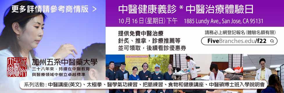 2022年10月15日-10月31日 5www.newsforchinese.com 廣告 2008年創報,灣區最受歡迎的免費社區報紙。看報不再花錢、充實灣區每日生活 編輯 : 國基 / 美編 : 玲玲