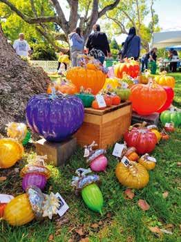 2022年10月15日-10月31日 誠徵特約記者、編輯、業務可在家上班,意者請電郵jean.ho@newsforchinese.com 第27屆 Great Glass Pumpkin Patch 邁入十月份,空氣充滿了濃濃的秋意, 路旁再度熱鬧起來的南瓜園,讓人開始蠢蠢 欲動,至南瓜園抱幾顆大南瓜與秋菊回家。 十月第一個週末, Bay Area Glass Institute 與 Palo Alto Art Center聯合舉辦年度的Great Glass Pumpkin Patch ,第 27 屆的玻璃南瓜藝術節, 地點位於 Palo Alto Art Center 的庭院與草地 上。耳聞該盛事號稱加州規模最大的玻璃南瓜 節,今年頭一回前往一探究竟,開開眼界。 秋日藝術盛事 不曉得從哪聽說玻璃南瓜收藏家都是第一 天特地早點去挑選藝術作品,而我們湊熱鬧的 成份居多,所以慶典第二天早上前往玻璃南瓜 節,倒也是從從容容。Palo Alto Art Center與圖 書館比鄰,那一區綠草如茵,環境優雅,感覺 特別陶冶性情。一到藝術中心,發現戶外廣場 與草地上人潮洶湧,原來大家都是衝著獨一無 二的小南瓜們來的。玻璃南瓜節是免費入場, 偌大的草坪擺放些木箱子與木架展示,有不少 玻璃南瓜直接排坐在草地上。旋即一頭栽入繽 紛的大千世界,逐一欣賞不同風貌的玻璃南瓜 們。雖然無法將它們都帶回家,但光是欣賞玻 璃南瓜們就十分療癒。 難以抉擇的時刻 現場不僅 有玻璃南瓜, 還參雜著可愛 的橡實與玉米 等玻璃作品, 以及少數耳環 作品。有些南 瓜上面有著萬 聖節的元素, 像是鬼臉或者 是長出惡魔角 來,十分有 趣。有些南瓜 單色色彩,有 些配色十分顯眼。作品尺寸大小不一,看到的 最小型南瓜要價莫約 35 美金或以上,稍微大一 些的價格至少 100 美金以上至幾百不等。玻璃