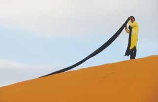 沖,水多就沖得乾淨,水小就由它去了,中間有一 共同洗手池。哈森二世清真寺也用這個方法,可是 現代化,水量非常大,由左、右兩方不間斷嘩嘩沖 洗,該是全世界最乾淨的厠所,倒是要注意鞋襪不 要打溼。 摩洛哥旅遊的重頭戲是去撒哈拉沙漠騎駱駝, 一群遠道之客在沙漠最邊緣暫時攪斷它亙古的平 靜,人人包起阿拉伯式頭巾,在駱駝及駝夫的運送 下,慢慢迎向落日,在沙丘線上留下一列縱隊的身 影。 作者簡介: Hijewel, 台灣出生長大, 在矽谷已居住30餘年,退休記 者,作家,出書十餘本,作品 以調查報導及幽默小品為主。 hijewel@gmail.com 嗨 句 集 27 熱門時事,博君一笑 文/ Hijewel 和疫情旅行 照片說明:一名當地人在沙丘線上示範如何包頭巾 2022年12月1日 12月14日 觀賞老中電視新聞,週一至週五7 pm-8 pm Xfinity 238 頻道上播出。 13 www.newsforchinese.com 論壇