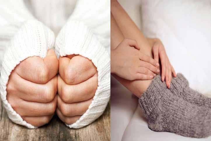 2023年1月1日-1月14日 痛 Wang Accountancy Cor p. 你或你認識的人經常抱怨手 腳總是冰涼嗎?在大多數情況 下,這不是一個問題,出現這種 狀況只是由於身體保持自己的溫 度。 對於我們的身體來說,血液 是一種奇妙的熱量儲存。通過血 液分流到皮膚,熱量被轉移到外 部空氣,幫助我們降溫。這就是 為什麼我們在炎熱天氣裏看起來 有點「臉紅」。 另一方面,在我們感到寒冷 時,我們皮膚中的血管會變窄, 因此分流的血液會減少。血液減 少意味著溫度降低,這在手和腳 上表現尤為明顯。 這是一個正常的過程,它表 明我們的身體正在完成維持正常 內部溫度和保護器官的工作。 通常,這種感覺只是暫時 的。但是,如果有人即使身體很 暖和,卻總是手腳冰涼,這可能 是其他因素造成的。 還有其他原因嗎? 任何導致血管變窄的東西都 會影響你四肢的感覺。 這可能是由於雷諾綜合症現 象( Raynaud ´ s phenomenon ) 等原因造成的。在這種現象中, 一些通往四肢的血管會暫時變得 狹窄。 雷諾綜合症患者的手指或腳 趾通常蒼白和冰冷。