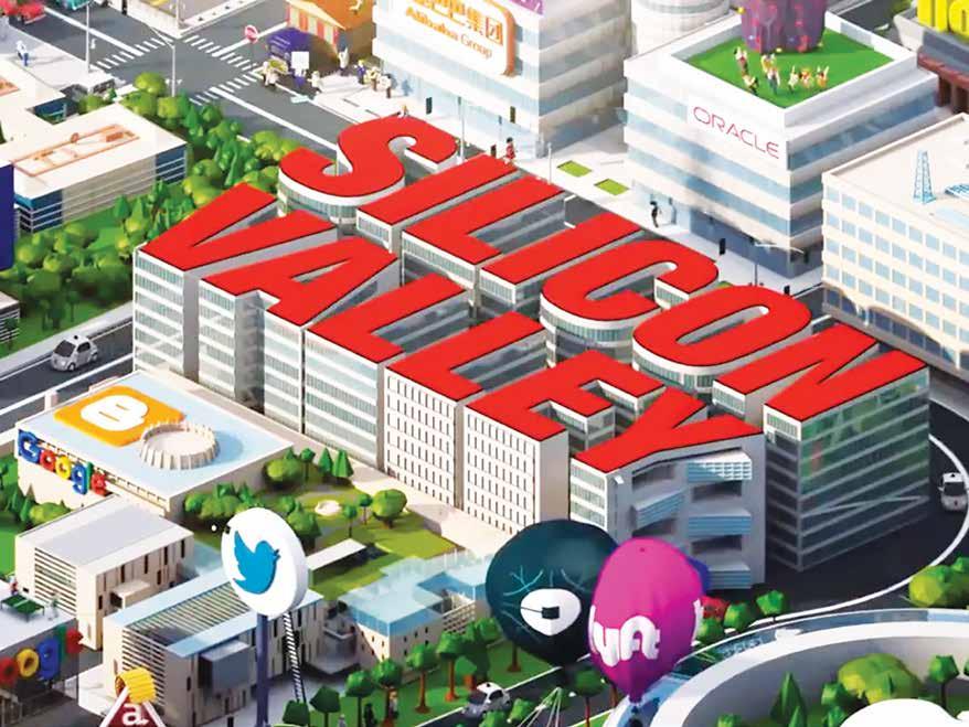 矽谷位於美國加州灣區,是世界上最具影響力 的科技創新中心之一。它的名字來源於該地區豐富 的矽元素資源,以及當地成為許多頂尖科技公司和 創業企業的聚集地。矽谷的興起可以追溯到 20 世紀 50 年代和 60 年代,當時美國政府和大學在技術研究 和發展方面投入大量資源。