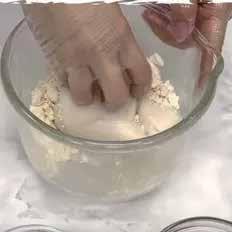 將白豆沙和步驟 2 一起拌勻至無 顆粒的麵糰。