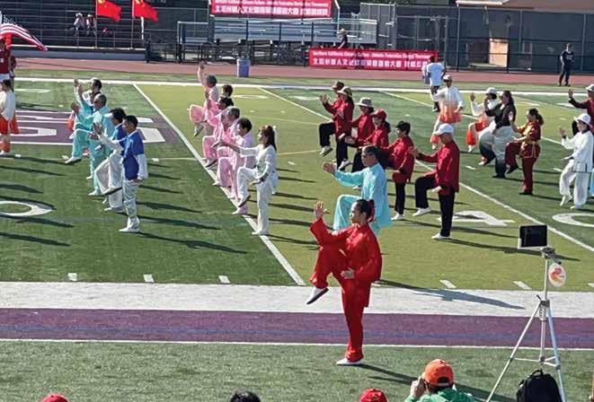 開幕式當天舉行了田徑錦標賽、太極內家拳 錦標賽、草地排球錦標賽、廣場舞比賽、 21 屆世 界學生繪畫比賽等活動。武醫融合是今年華體會 一大特色,從廣場開幕式上百人二十四式太極拳 表演,到館內太極名家表演,太極推手錶演、太 極防身技巧對練和太極內家拳錦標賽 處處顯示 了中華武術文化的博大精深,另一方面,現場提 供中醫義診為民眾提供全方位服務。美國中醫 針灸聯盟的劉愛平、余永忠醫師等大力宣傳聯 邦"H.R.3133: 2023年美國耆英針灸法案",爭取 為全美 7 千萬老人可以享受由 Medicare 支付、由持 執照針炙師提供的針炙治療,推動中醫融入主流 醫學,現場獲得大量民眾簽名支持。加州大學- 矽谷校長楊磊、千帆大學校長麻仲學、國際醫藥 大學校長王英秋帶領師生提供中醫義診諮詢,藥 氣宗現場炮製中藥、義診,集體氣功演練,引起 大量民眾興趣。這次加州大學矽谷義診團隊獨有 的“全息針法"和“脊椎診斷學"吸引了絡繹不 絕的現場各界人士,展現了中醫文化的瑰寶魅 力!