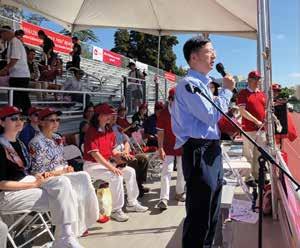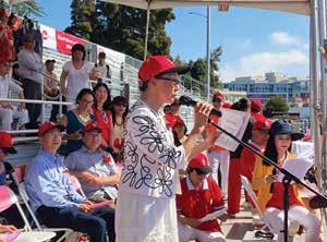 北加州華人文化體育協會執行長李競芬在致詞 中講到,華體會舉辦的運動大會,是中國大陸、台 灣、香港之外最大規模的華人運動會。 「體現了 奧林匹克精神、團結和平、友誼進步。」