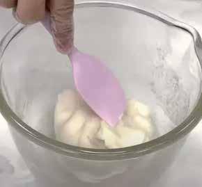 冰皮月餅粉和冷開水攪拌至光 滑,再加入白油拌勻。
