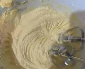 奶油軟化加入砂糖 , 用電動打蛋器攪至發白 呈羽毛狀 如果融化放入冰箱冷藏 再拿出來。