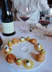 首先上桌的開胃菜為每人三種的開胃小餅有 炸馬鈴薯搭配芥末醬、脆薄餅魚子醬、以及鹹鹹 的泡芙。