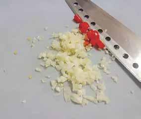 等待小黃瓜脫水的過程中,我們可以先來 切蒜頭、辣椒。