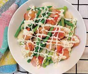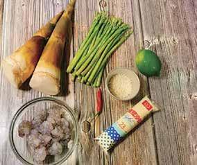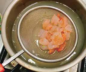另備一鍋滾水,川燙蘆筍、鮮蝦,取出泡 冰水,增加脆口感
