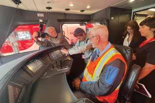 耗資近 25 億元, Caltrain 現擁有 37 列電氣化列 車。週六,媒體和受邀客人被安排搭乘電氣化列車 從San Francisco往返Millbrae車站。