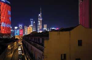 5 月上海黃浦江兩岸,近看百年前 上海的外國租界,成片的弄堂,老 房子,石庫門的山牆,狹窄的小馬 路,灰暗的燈光,讓我們回到了以 前居住過的地方。放眼前方眼前一 亮,一大片輝煌的建築群展現在眼 前 - 上海“東方明珠",中國一帶 一路的橋頭堡。