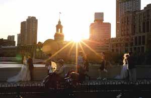 5 月上海黃浦江兩岸,近看百年前 上海的外國租界,成片的弄堂,老 房子,石庫門的山牆,狹窄的小馬 路,灰暗的燈光,讓我們回到了以 前居住過的地方。放眼前方眼前一 亮,一大片輝煌的建築群展現在眼 前 - 上海“東方明珠",中國一帶 一路的橋頭堡。
