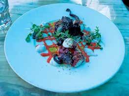 前菜點的是烤章魚,切成塊的章魚腳搭配 青椒醬汁與萊姆蛋黃醬,章魚是比較軟嫩的口 感,不過我們都比較喜歡有嚼勁一點的料理方 式。