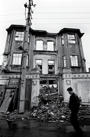 6-恍見(1992年) 這棟洋樓相當考究,大玻璃窗使 房內光線充足,圍牆和房子外飾的浮 雕圖案,顯示著主人的氣派。昔日建 成時,不算豪宅,但也相當體面。如 今風光不在,殘垣斷壁令人恍惚 ,也 有一種對未來的期盼。