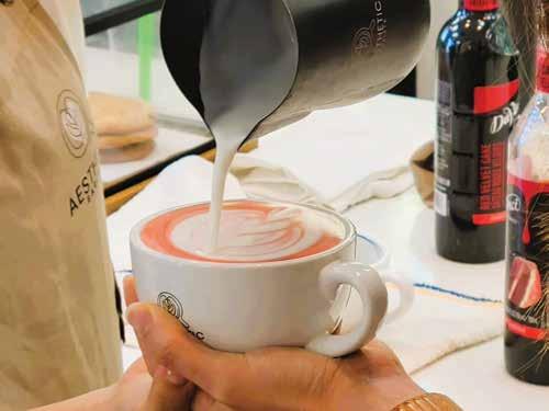 時間過得飛快,作完兩杯拿鐵後課程 即將結束,每個人都端著自己的作品合影 留念。雖然過程中咖啡師幫忙指導的比重 很高,幾乎是零失敗可能,不過我貪圖 的是嘗試學習新技能的新奇感受。看著手 中這杯有著細膩圖案的拿鐵,我和朋友決 定回家繼續找機會練習拉花,更讓我體會 到咖啡師在每杯咖啡背後所投入的心血。
