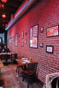 Piglet & Co 門口不太起眼,推開深色的門 走進去會看到掛著紅色燈籠的天花板以及一整 面的磚牆,吧檯打光背景播放著 80 至 90 年代的 電影,這天播放的是 1989 年在舊金山拍攝取景 的“龍在天涯"。