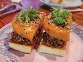 的麵包皮包著豬肉蝦 醬,搭配焦糖蜂蜜美 乃滋與糖霜核桃。