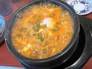 店內的 Soon Dae Soup(血腸湯飯) 也是一 大亮點,內含血腸、豬肉、下水與各式蔬菜, 湯頭鮮香濃郁,加入一碗白飯後格外滿足,是 許多韓國人想家的味道。