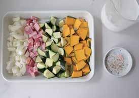 備餐烹飪的優勢 : 同時在烤箱中烹調配菜。這 可以讓烤箱的運作時間較短,減少準備時間並 節省能源。