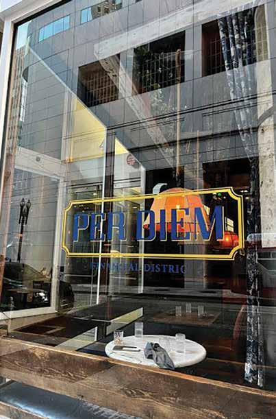 餐廳空間設計相當復古,一樓的落地窗與 後方的吧檯空間有著歐洲的氣息,二樓還有另 外的座位區,不時可以看到服務生從餐廳端著 各種美食爬樓梯前往二樓。Per Diem 的菜單結 合了加州的特色料理與當地食材,酒單的選擇 也很豐富,很適合下班與另外一半或是跟三五 好友一同來聚會。