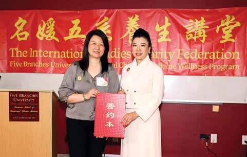 簽約儀式吸引多位重要嘉賓,包括北美 洲國際名媛慈善聯盟會會長 Joanna Jia 、加 州五系中醫藥大學副校長Gina Huang、美國 中華婦女聯合會會長何孔華女士、美洲中醫 協會會長馬雪女士等社區領袖及專業人士。