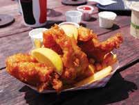 午餐來到當地人氣餐廳 Sea Pal Cove,位 於海港邊,擁有戶外座位與開放海景。點上一 份炸魚薯條與濃郁的 Clam Chowder,是到 Fort Bragg 不可錯過的經典味道。尤其是濃湯裡飽 滿多汁的蛤蜊,讓人一口接一口,直呼過癮。 港邊可見海鳥飛翔、海獅悠遊,為用餐時光增 添一抹野趣。