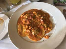 餐廳以開放式廚房設計為特色,餐前侍者先端上了麵包, 搭配橄欖油及甜酸醋,我們點了前菜油炸小花枝 Calamaretti 、義式薄片嫩煎小牛肉 Scaloppine 、義式龍蝦餡餃 Turtei d'Aragosta 、蘑菇雞肉 Pollo Funghi ,道道都充滿義式經典風 味。