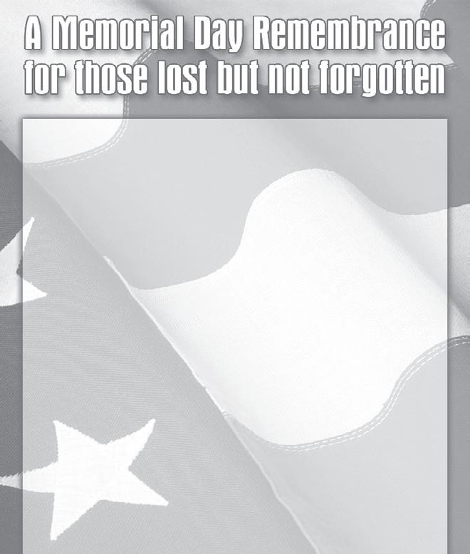 Cemetery Is in need of donations for the upkeep & maintenance of the cemetery. Donations May Be Mailed To: Prairie Chapel Cemetery C/O: Helen Foster 24578 200th Road Grant City, Mo. 64456 Will Be Held On Saturday, May 27, 2023 ...Memorial Weekend At The Pattonsburg School Gym Honoring the 50 Year Class of 1973 and the 2023 Graduating Class. $20 Per Person with reservations $23 Per Person without reservations Reservations due by May 18th The 2023 Pattonsburg ALUMNI BANQUET To Make Reservations, call: Gene Walker at 660-367-4397 or Shane Searcy at 515-979-0732 Social Hour at 6:00 PM Dinner at 7:00 PM followed by a program. IN OBSERVANCE OF MEMORIAL DAY WE WILL BE CLOSED MONDAY, MAY 29, 2023 Our Saturday date this month is May 20th. STANBERRY LICENSE OFFICE 130 WEST FIRST ST., • STANBERRY, MO 64489. PHONE: 660-783-2725 MONDAY-FRIDAY, 8:00 AM-5:00 PM PLEASE NOTE: THE ABOVE INFORMATION CONTAINED IN THIS AD IS NOT NECESSARILY ENDORSED BY THE STATE AGENCY. GOINGWHAT’SHERE’S ON... ALBANY COMMUNITY CALENDAR May 25 Stag Night at the Golf Course, 5:00 PM May 25 Albany Square Farmers Market, 4:30 - 6:30 May 29 NO SUMMER SCHOOL May 29 Memorial Day May 29 Albany Aquatic Center Opening Day June 1 Albany Square Farmers Market, 4:30 - 6:30 June 1 Stag Night at the Golf Course, 5:00 PM June 3 Main Street Albany Scavenger Hunt, 10:00 AM to 2:00 PM at Smith Street Park June 5 Credit Recovery Begins For Grades 8 - 12 June 8 Albany Square Farmers Market 4:30 to 6:30 PM June 8 Stag Night at the Albany Country Club, 5:00 PM June 10 ACT Test Given June 14 Flag Day June 15 Albany Square Farmers Market On The Square With Music At The Market Featuring Brad Arndt June 16 Last Day Of Summer School June 16 Registration Deadlilne For The July 16 ACT Test June 16 Youth Tackle Football Registration Due to ACC Participants June 18 Father’s