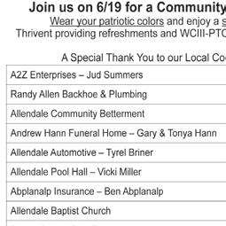 JUNE 15: BRAD ARNDT JULY 20: SHELBY & CLINE AUGUST 17: BEN & LAUREN JOHNSON Music AT THE Market THANK YOU TO OUR SPONSORS Class of ALBANY FREE MUSIC SERIES THIRD THURSDAYS ALBANY SQUARE VENDORS WANTED Please pick up vendor forms and market regulations at Bookworm Bargains or Pansy Patch Quilt Studio on the north side of the square. EVERY THURSDAY, NORTH SIDE OF THE ALBANY, MO SQUARE FROM 4:30 to 6:30 PM Set up starts at 4:00 PM EVERY THURSDAY!!! Let’s All Get Ready For The..... 101 South Polk St. • Albany, MO 64402 660-726-5113 Whac y Albany,Mo. *Purchases Made Must Be At Least $10.00 Before Discount Is Applied Come In & “Spin & Win” Every Whacky Wednesday! Come In & Spin WheelDiscountThe For A Chance to 10%win To 25% Off* Your Purchase! Every Wednesday! We Will Continue Doing Our Whacky Wednesday Spin The Wheel For Savings! New Hours: Monday & Tuesday, 10:00 am - 5:00 pm Wednesday - Saturday, 10:00 am - 6:00 pm, Closed Sunday NOTICE: PLEASE REMOVE YOUR DECORATIONS FROM THE DARLINGTON CEMETERY BY JUNE 20, 2023 THANK YOU! DARLINGTON CEMETERY BOARD