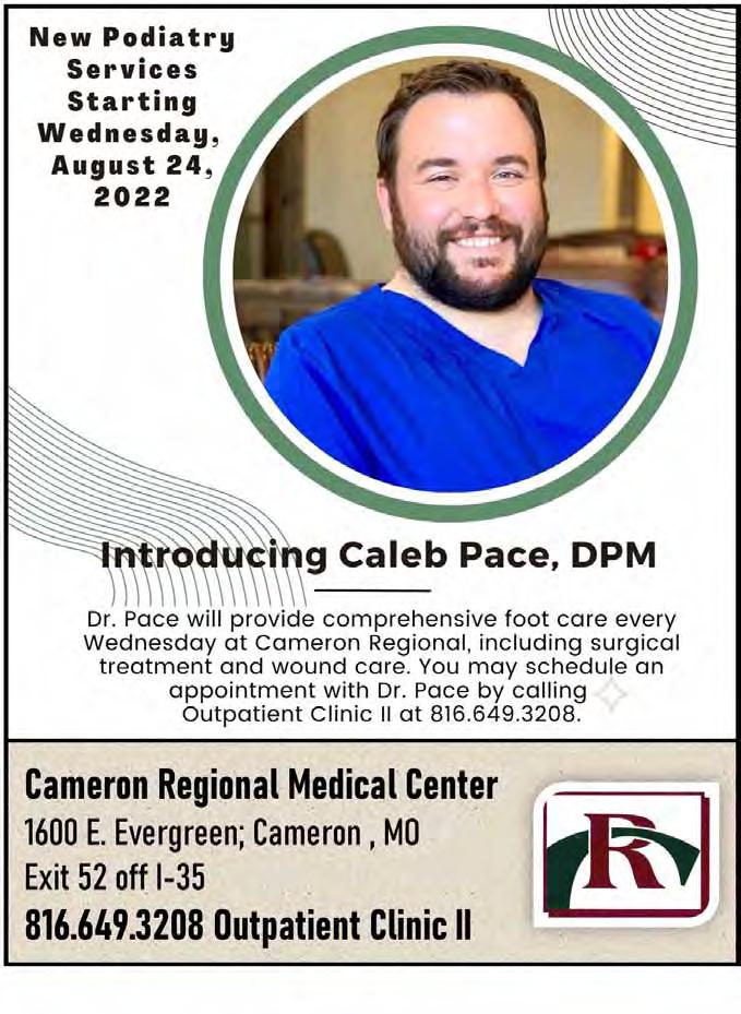 or jackw@pettijohn.com sethjones@jessicajonesmolaw.com 660-726-8079 GET YOUR COPY OF RODNEY’S NEW BOOK AT THESE BUSINESSES... FOR RENT NEW SELF-STORAGE UNITS, UPSTAIRS, in addition to the basement units. Various size and prices, at the southeast corner of the square in Albany. Call 660-726-5500 LocatedLIVESTOCKOSBORNAUCTION7milesWestofCamerononHWY.36,OSBORN,MO Danny 816-675-2424 or 816-695-0504 Randy Vanderkooi, Fieldman 816-632-0694 Ivan Kanak, Fieldman 816-724-1043 Jayme Walker 816-665-4277 Transportation and order buying available • Bonded • Insured Barn Phone: 816-675-2424 FRIDAY!EVERYSALE FRIDAY!EVERYSALE RECEIVING HOURS: Daily until sale time. MARKET REPORT: May 18 Sale Top Butcher Cow - $0.68 Top Bull - $0.81 246 Butcher Cows Sold. Buying Butcher Cows & Horses Daily We currently have 5 butcher cow buyers. NEXT SALE FRI, June 11:30AM1st Barn Phone: (816) 675-2424 (816) 649-8485 Transportation and Order Buying Available • Bonded • Insured SALE EVERY WEDNESDAY | 10:00 a.m Buying Butcher Cows & Horses Daily We Have 9 Butcher Cow Plants Represented Danny RECEIVING HOURS: Daily until sale time COW DISPERSAL: ROBIN ECTON - LATHROP 35 ANGUS COWS W/CALVES Top Cow: $1.02 - Princeton Top Bull: $1.28 - Wathena Holsteins & Longhorns: $0.58-$0.81 Longhorn X & Dairy X: $0.82-$1.08 Owner, Jayme Walker 816-665-4277 Randy Vanderkooi, Fieldman 816-632-0694 Ivan Kanak, Fieldman 816-724-1043 Frank Peterson, Fieldman 660-247-2306 Dale Coble, Fieldman 816-213-3581 Todd Gottswiller, Fieldman 816-390-7917 Gary Mann, Fieldman 816-294-5849 Bill Bray, Fieldman 816-724-0438 Gary Jackson, Fieldman 816-724-4348 STEERS HEIFERS 300#........................................$2.32 .............................................$2.11 400#........................................$2.25 .............................................$2.02 500#........................................$2.16 .............................................$1.88 600#........................................$2.08 .............................................$1.76 700#........................(Potload) $1.88 .............................................$1.59 800# .......................................$1.68 .............................................$1.55 900#........................................$1.60 .............................................$1.40 1000#......................................$1.50 .............................................$1.30 1100# Fats ..............................$1.31 .............................................$1.30 889CALVES265COWSLASTWEEK|EXPECTING1200THISWEEK