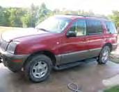 CAR: 2002 Mercury Mountaineer; 4x4, burgundy with tan interior, 192,000 miles with new battery;