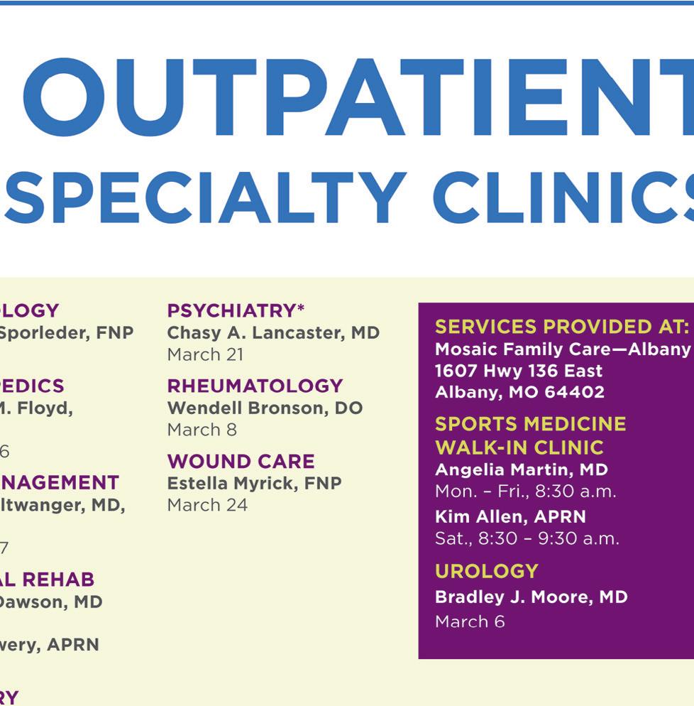 Calendar CRMC offers financial assistance to qualifying individuals. Please call (816) 649-3211 or 649-3239 for more information. ASK ABOUT OUR PROMPT SELF-PAY DISCOUNT PROGRAM. March is National Colorectal Cancer Awareness Month. You may pick up your free screening kit at CRMC’s Main Entrance during March. March 2023 Outpatient Clinic Calendar Sunday Monday Tuesday Wednesday Thursday Friday Saturday 1 Dr. Barnhill Dr. Damion Dr. Hogan Dr. Middleton Dr. Mirza Dr. Pace Dr. M. Tonkovic 2 Dr. Damion Dr. Dugan Dr. Jafri 3 Dr. Ananth Dr. Damion 4 Dr. Arain Dr. Radadiya Dr. Salamat Dr. Walia 5 Dr. Arain Dr. Mounla 6 Dr. Cornett Dr. Middleton Dr. Shemwell Dr. Stevens Dr. V. Tonkovic 7 Dr. Ewing Dr. Hogan Dr. Lee Dr. Reintjes Dr. Shoaib Dr. M. Tonkovic Dr. Walker 8 Dr. Barnhill Dr. Hogan Dr. Middleton Dr. Pace Dr. V. Tonkovic Dr. Mirza 9 Dr. Dugan Dr. Jafri Dr. Jandali Dr. Roe 10 Dr. Ananth Dr. Assefa Dr. Gomes 11 Dr. Hameed Dr. Shoaib Dr. Shaffie 12 Dr. Hameed 13 Dr. Cornett Dr. Middleton Dr. Souders Dr. V. Tonkovic 14 Dr. Hogan Dr. M. Tonkovic 15 Dr. Barnhill Dr. Hogan Dr. Middleton Dr. Pace Dr. M. Tonkovic 16 Dr. Dugan 17 Dr. Ananth Dr. V. Tonkovic 18 Dr. Mahmood Dr. Radadiya Dr. Salamat Dr. Walia 19 Dr. Mahmood Dr. Mounla 20 Dr. Cornett Dr. Damion Dr. Middleton Dr. Shemwell Dr. V. Tonkovic Dr. Souders 21 Dr. Damion Dr. Hogan Dr. Lee Dr. Shoaib Dr. M. Tonkovic Dr. Walker 22 Dr. Barnhill Dr. Damion Dr. Hogan Dr. Middleton Dr. Mirza Dr. Pace Dr. Sharma Dr. V. Tonkovic 23 Dr. Damion Dr. Dugan Dr. Jafri Dr. Roe 24 Dr. Ananth Dr. Assefa Dr. Damion 25 Dr. Lancaster Dr. Shoaib 26 Dr. Lancaster 27 Dr. Cornett Dr. Hindupur Dr. Middleton Dr. Shemwell Dr. Souders Dr. V. Tonkovic 28 Dr. Hogan Dr. Lee Dr. M. Tonkovic 29 Dr. Barnhill Dr. Hogan Dr. Middleton Dr. Mirza Dr. Pace 30 Dr. Dugan Dr. Jafri 31 Dr. Ananth Peri Faheem Nina Gregory Alan Julius David David Maria Kashif Jessica Mohan Syed Badr Chacy Eugene Matthew Zafar Mary Moben Yaser Caleb Shashank Ricardo Stephen Brian Muhammad Sobia Arvind Robert Muhammad Colby Damien Marija Viseslav Damandeep Angela Muhammad Laeeq Sam Kendall Cassandra Laura Arihant Fred Barry James Ly Shahzad Elisa