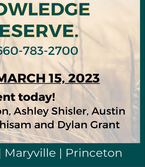 THE NEW SHOPPER • TUESDAY, FEBRUARY 28, 2023 - PAGE 5 Our Business Is Growing & That Means Great Savings On Quality Post Frame Products, Roofing & Accessories! Call Or Come By & Check Out All The Products We Sell & Service! CLIP THIS COUPON & BRING IT TO BYLER STEEL WITH YOU OR SIMPLY MENTION THIS AD TO BYLER STEEL AND RECEIVE... BYLER STEEL LLC 5% OFF YOUR PURCHASE! DURING ALL OF JANUARY & FEBRUARY, 2023 RED CLOVER COATED LB. $2.15 RED CLOVER RAW LB. $2.47 RED CLOVER RAW INNOCULATED LB. $2.62 RENOVATION LADINO CLOVER LB. $3.95 CLIMAX TIMOTHY ............................................... LB. $2.45 CAJUN II ENDOPHYTE FREE FESCUE . LB. $2.50 BROME LB. $3.60 PROFIT ORCHARD GRASS LB. $3.30 CERTIFIED BRUCE BIRDSFOOT TREFOIL LB. $7.84 20/20 ALFALFA LB. $4.25 SPREADOR ALFALFA LB. $4.35 CRP MIXES OF ALL KINDS GIVE US A CALL FOR ALL YOUR NEEDS. THESE PRICES ARE SUBJECT TO CHANGE WITHOUT NOTICE. PARSONS SEED CLEANING PARSONS SEED CLEANING 660-726-3774 OR STERLING HOPKINS AT 660-254-0773 Be Sure & Stop By Maryville Florist’s For Their Spring Sales Event, Too!!! 214 N Main St Maryville, MO, 64468 (660) 562-3066 • mflorists214@gmail.com Minnie Lane South Side Of The Downtown Square Maryville, Mo. Remembering... Clayton Stitt On His Birthday Mar. 4, 2023 Sadly Missed By All His Family & Friends! Tracy Coburn Pretty Fix Salon 115 North Smith St. Albany, MO 64402 Normal Hours Are: Monday - Friday 9:00 am to 5:00 pm Spray Tanning Haircuts • Color • Highlights Perms • Ear Piercing • Pedicures Call or text 660-726-8039 or message me on Messenger CARD OF THANKS Thank you to Charmayne at Bar X for providing the meal after my wife’s funeral. Thanks also to Bro. Jesse, New Beginnings Church, Bryan and Linda Polley at Roberson Polley Chapel, to everyone who provided meals, and for all other acts of kindness shown to our family at the time of the death of our loved one, WANDA PICKEREL. From the Families of... BOB PICKEREL EMILY ELLIS KENNY POPPLEWELL and BOBBY GOBLE.