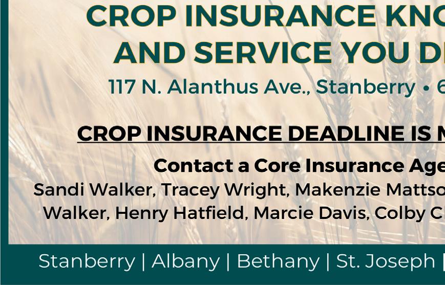 GRANT CITY, MO. ☛ ☛4/$11.88 with purchase of 4 Pepsi products 12 pack cans, 8 pack bottles 12 fl. oz., 10 pack mini cans 7.5 fl. oz. or 6 pack bottles 16.9 fl. oz. 2.99 Fresh ground beef 80% lean, 20% fat, 16 oz. roll (limit 2) or Honeysuckle White fresh ground turkey 93% lean, 7% fat, 16 oz. roll (limit 2) buy three, get two ONLY! ONLY! HAPPY 4 TH OF JULY ALBANY, MO. PAGE 8 - TUESDAY, FEBRUARY 28, 2023 - THE NEW SHOPPER 2/$5 Hy-Vee Midwest Pork bacon wrapped pork ribeye chop 8 oz. 3/$5 Hy-Vee Midwest Pork boneless pork loin butterfly or America’s cut chop 8 oz. 5/$5 Hy-Vee Midwest Pork boneless top loin chop 4 oz. 10/$10 Our Special Recipe bratwurst links or patties regular or skinless, select varieties 3.75 oz. Fri - Sun | March 3 - 5 ONLY! SMOKIN’ PORK SALE 3.88lb. Fresh pork tenderloin Hormel Always Tender 2.99lb. Pork loin back ribs Hormel Always Tender, previously frozen Fri - Sun | March 3 - 5 ONLY! Plus deposit on applicable items. 3.99lb. Sugardale ham steak 2.99lb. Hy-Vee Midwest Pork fresh cut pork steak value pack 5.98 Hormel bone-in smoked pork chops 15 oz. 5.00 Tenderloin sandwich each 4.99lb. Ham salad 5.99lb. Hy-Vee quality sliced deli ham or salami select varieties 1.59lb. Bone-in pork shoulder roast Hormel Always Tender 2.99 Hormel Black Label bacon 12 oz. (limit 2) SMOKIN’ PORK SALE Due to supply availability, not all items in this may be available at beginning of this ad period. Home Cooking? Make meal prep more efficient and enjoyable with a custom kitchen! Eckard’s will consult, design your NEW kitchen. Just ask for Caleb! BackSPlash - Countertops - Cabinets KITCHEN Kompact Cabinets Glenwood White Shaker Chadwood cambria quartz Countertops Laminate Countertops Several choices of backsplash ranging from Virginia Tile to DAL- Tile! FREE DELIVERY! Hwy 69 North, Bethany, MO 64424 Hours: Mon- Fri, 8am to 5pm; Sat, 8am to Noon 660-425-6331 ECKARD’S Congratulations! dylan mCINTYRE Dylan signed his letter of intent to play baseball at North Central Missouri College in Trenton, Mo. Dylan is from Northeast Nodaway School Dist., Ravenwood, Missouri RHONDAʼS UPHOLSTERY and Refinishing. Contact me at 660726-3741 for all your upholstery and refinish needs. Pickup and delivery available. Albany, MO. PAYING TOO MUCH for Medicare Supplements? Call me. RON PETERSON, 660-783-2526. FOR RENT NEW SELF-STORAGE UNITS, UPSTAIRS, in addition to the basement units. Various size and prices, at the southeast corner of the square in Albany. Call 660-726-5500