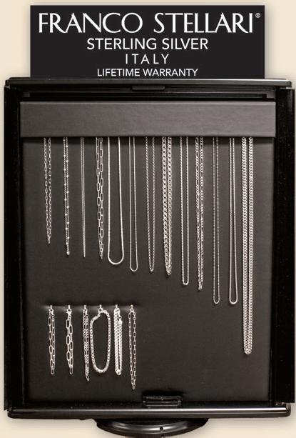 CG Creations’ president, Frank Fiasconaro, says that his recent focus is on providing the highest quality at lower prices, in addition to helping retailers maximize turnover with reduced inventories. One standout is an extensive new collection of Adjustable Chain, allowing retailers to save money and valuable counter space on the basics. “It’s especially important these days to roll with the marketplace, and the economy in general,” Fiasconaro says. “We’ve always made it our number-one priority to help our customers stay positioned for longlasting success.”
