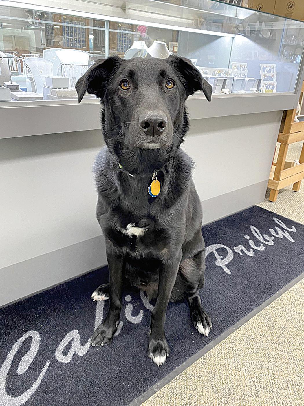 Meet Leo! Leonardo “Leo” is the most energetic and frequently requested employee at Keokuk, Iowa-based Cahill-Pribyl Jewelry & Gifts. He was adopted during the pandemic and has been a mainstay at work since the store reopened. Leo is a Lab/Border Collie mix. Unlike his breeds commonly known characteristics, he is very calm and laid back. Leo is eager to get to work each day and loves to greet every customer that comes in. He will even comfort customers while they get their ears pierced. His favorite part of the day is when delivery drivers bring him treats and play with him. He’s a perfect t in the jewelry store and is loved by everyone!