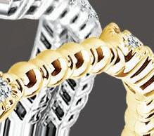 “We have added geometric earrings, on trend bangles, and elevated bracelet and necklace sets,” she describes. “There are bold yellow gold pieces and new two-tone and tri-color products. The gold and platinum chain assortments are growing. We have added a new collection of solid link and men’s bracelets.”