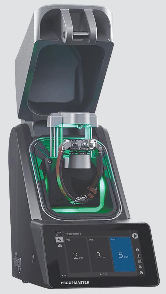 Perform precise water resistance testing with a quiet, integrated compressor, operating up to 5 bar pressure and -0.5 bar vacuum. Its intuitive 5-inch touchscreen and automatic testing streamlines operations, while the ScratchProtect adjustable support prevents watch damage.