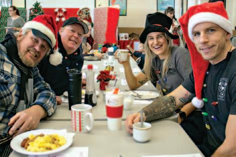 (Above) Greg Hilvers, left, shares a festive breakfast with Station 1 Smithville firefighters Jake Carruthers, Olivia Drake and Tim Kitson.