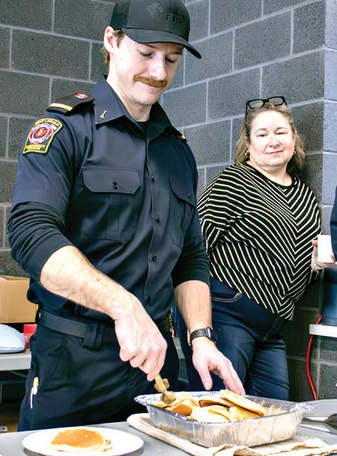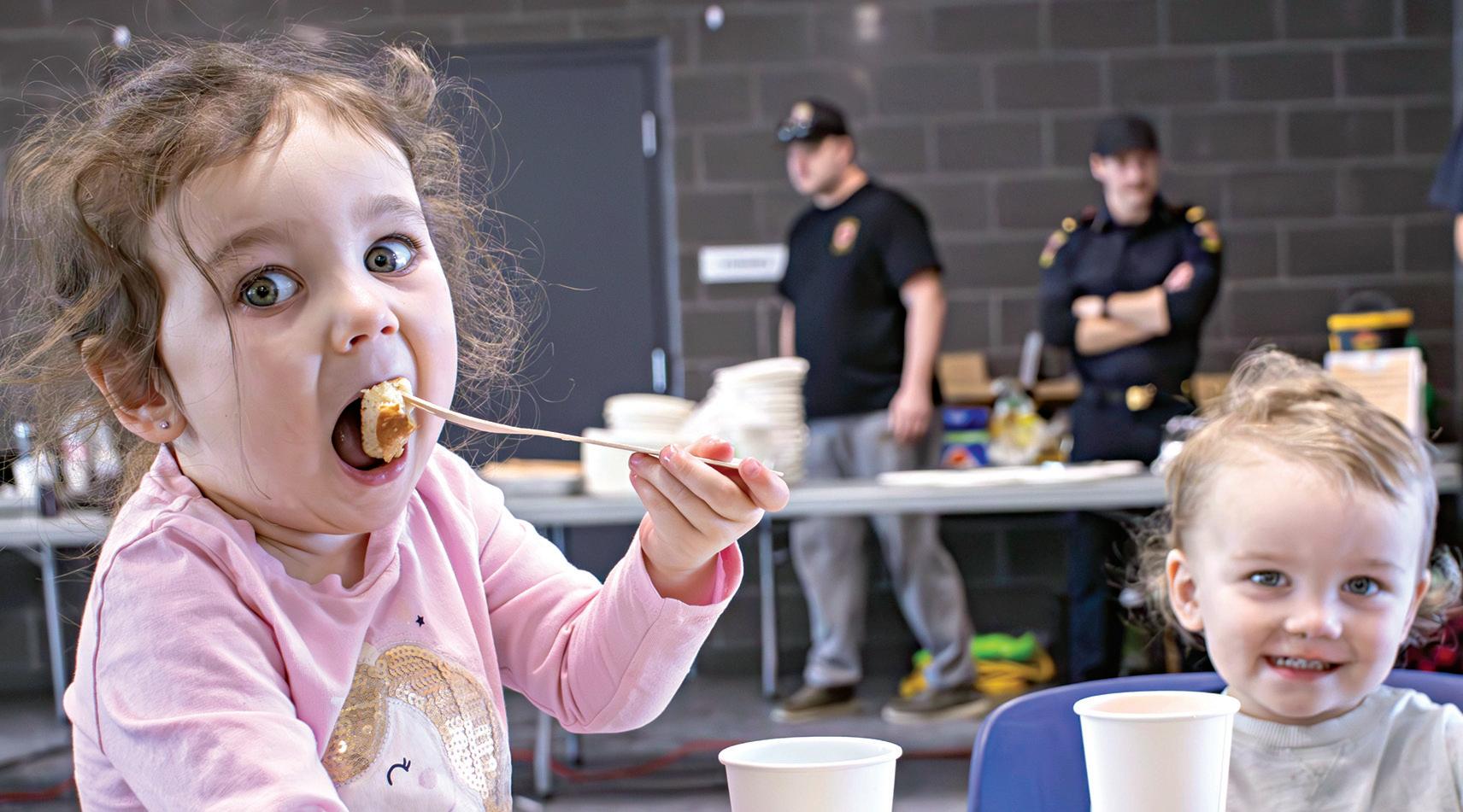 Blake MacDonald, left, shovels back syrupy pancakes as little brother Boone smiles at the camera. The kids were among those who enjoyed the West Lincoln Firefighters pancake breakfast - part of West Lincoln’s Family Day activities on Monday. For more coverage, please turn to Page 12. Loree – Photo