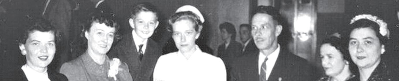 Left to Right: Mom’s sister Pat, mother Helen, brother Butch, Bev, father Stanley, mother of her best friend Sally, Mrs. Graham, sister Betty - one of only two photos with the whole family - at mom’s nursing school graduation.