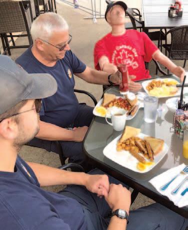 Volunteers from A Crew welcome the newest recruit to South Shore Search & Rescue at a special breakfast on Sunday. Crew members Conor Smythe (left), Bob Gordon (centre) and new member “JJ” gather for a quick meal before hitting the waves. JJ, the volunteers’ new training manikin, joins the team in thanking sponsorship JJ’s On The Dock in Grimsby. Rescue crews are on duty 24/7 during the boating season and will put JJ into service for training in recovering victims from the water.