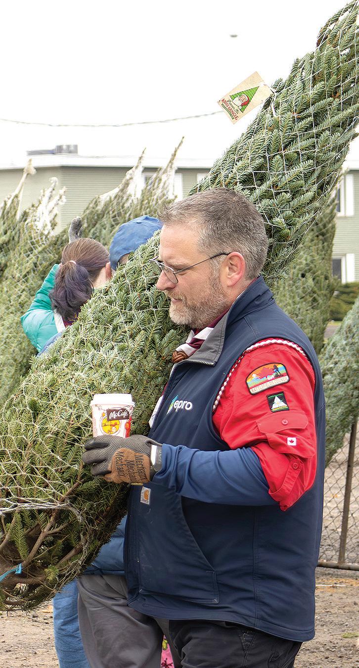 Scout Ryker Bonner, 10, pulls his weight as Beamsville Lions set up their Christmas tree lot on Saturday - located on Ontario Street, north of the tracks in Beamsville. The lot is open weekdays 3-9 p.m.; Sat./ Sun. 10 a.m.-6 p.m. for cash, debit and credit sales.