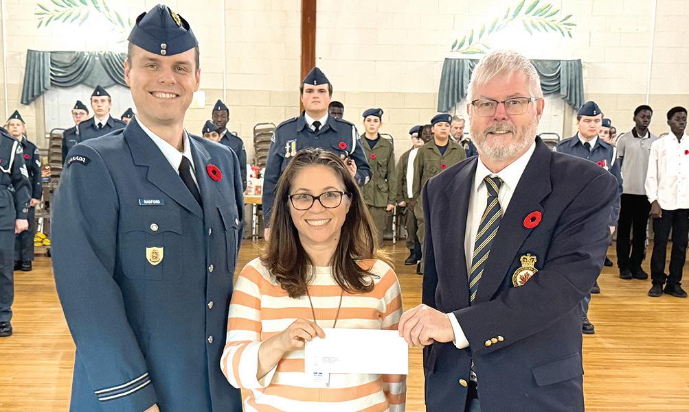 (Left) Air Cadet Flight Sergeants Kennedy Kyle (left) and Dylan Kyle guard the Smithville cenotaph on Remembrance Day.