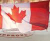 Royal Canadian Legion Branch 393 member Kevin Wadden stands his post before the Canadian and Ontario flags and British ensign.