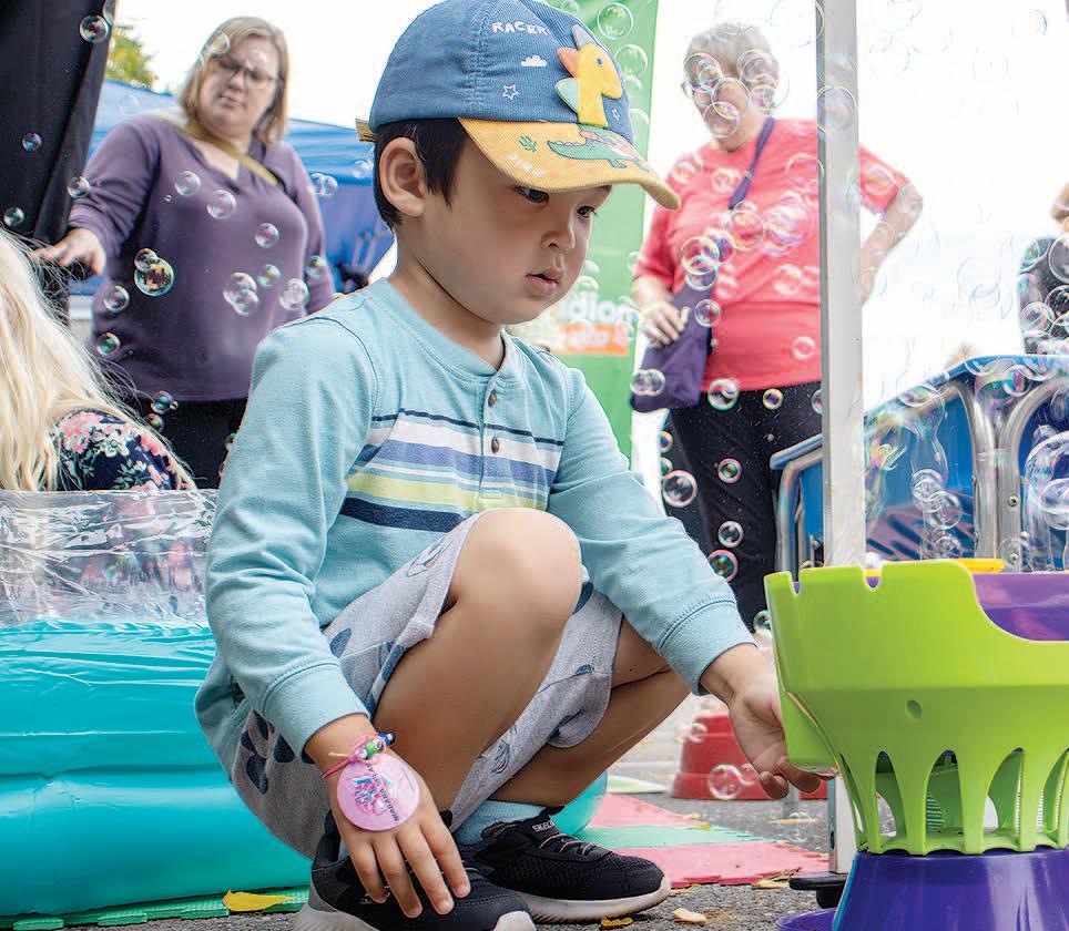 Four-year-old George Lypko plays with a bubble machine at the Bethesda Services booth at Saturday’s Fling off King. Please see Page 16 for more coverage.
